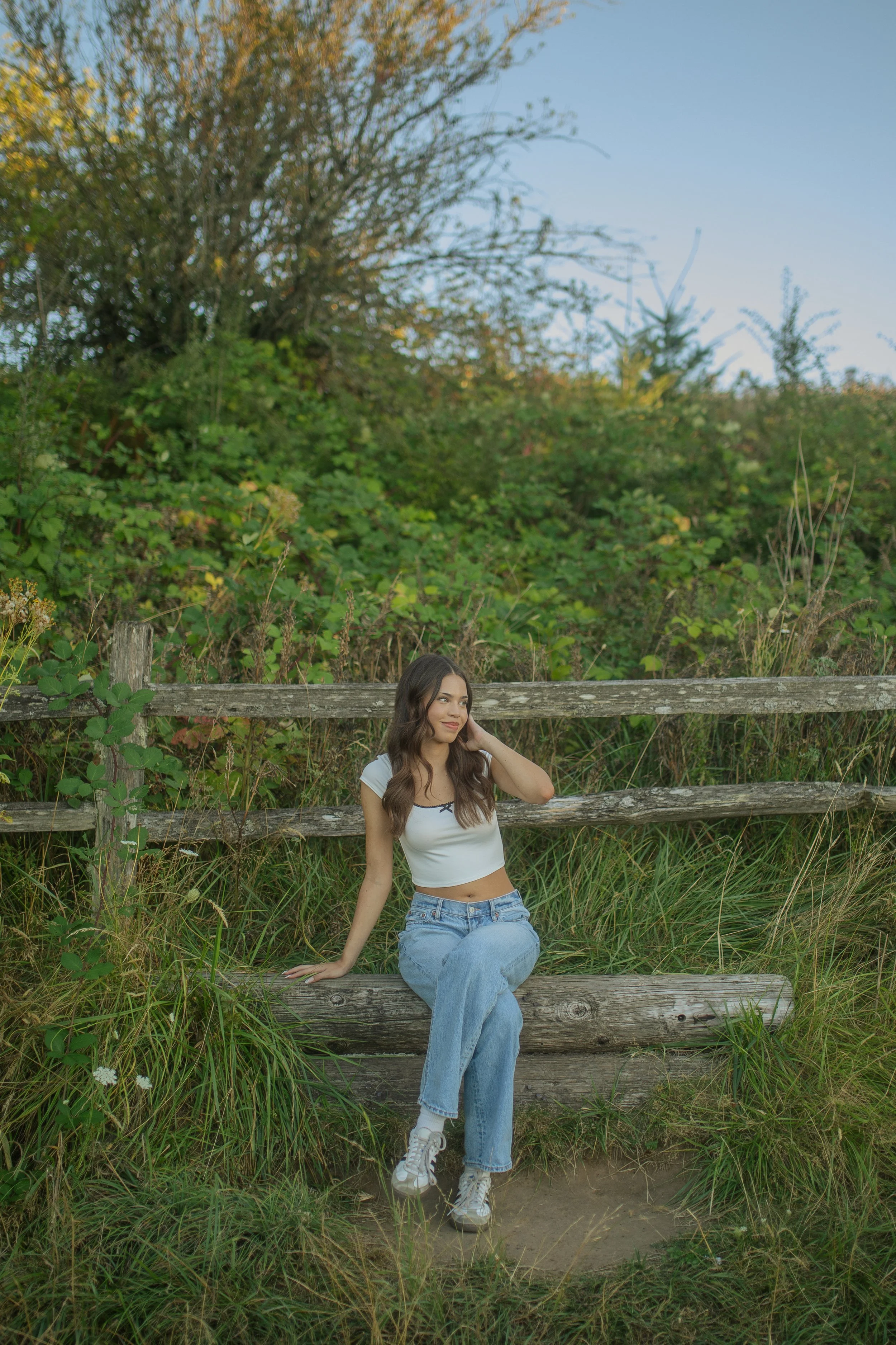 A lovely summer evening in Bend, Oregon — pink skies glowing over the mountains. Grace’s session felt dreamy and effortless, blending the colors of the landscape with her natural warmth.